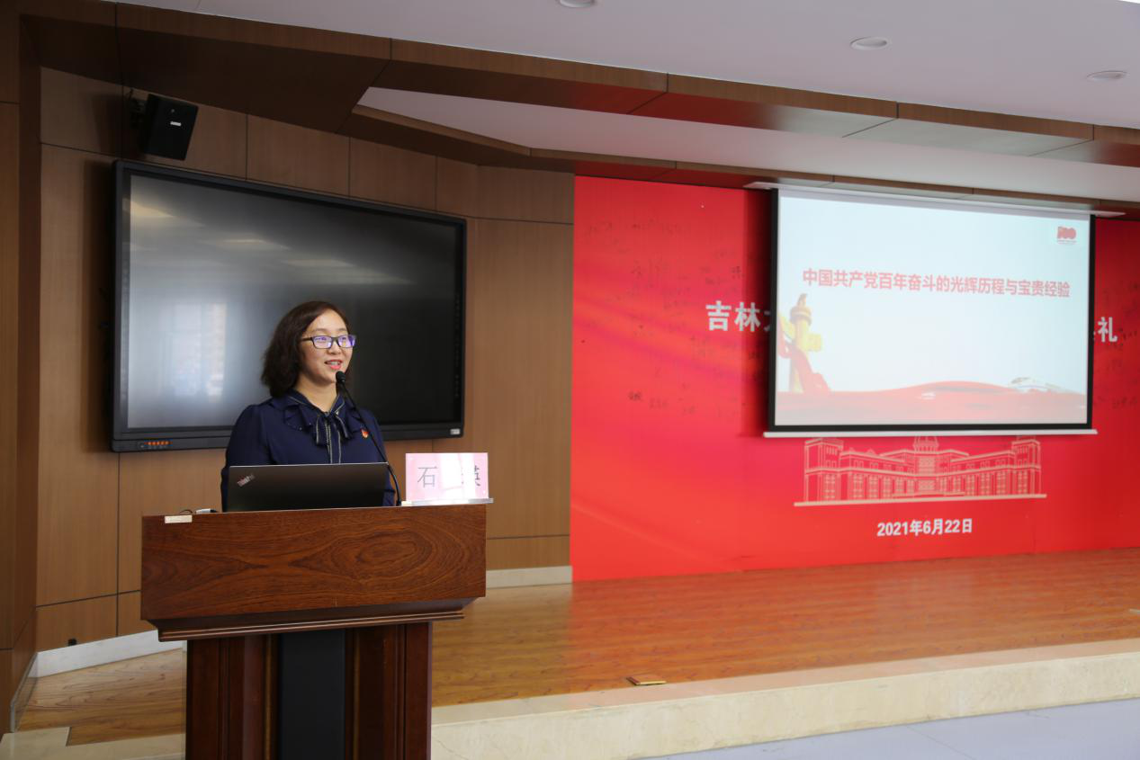 副院长石瑛教授作题为《中国共产党百年奋斗的光辉历程与宝贵经验》的报告。国内合作处副处长王德刚,实验室管理处副处长魏立志,国际教育极速赛车