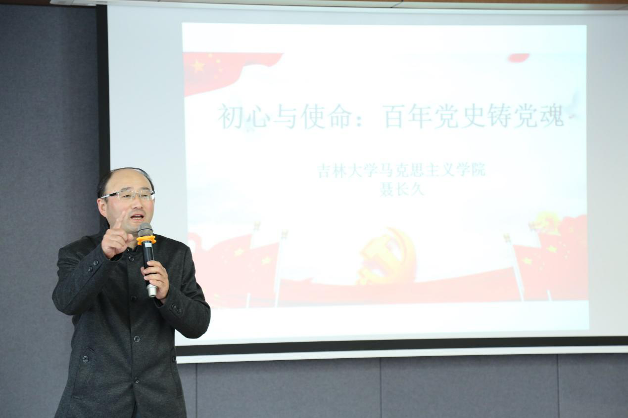 聂长久副教授作题为《初心与使命:百年党史铸党魂》专题辅导报告。