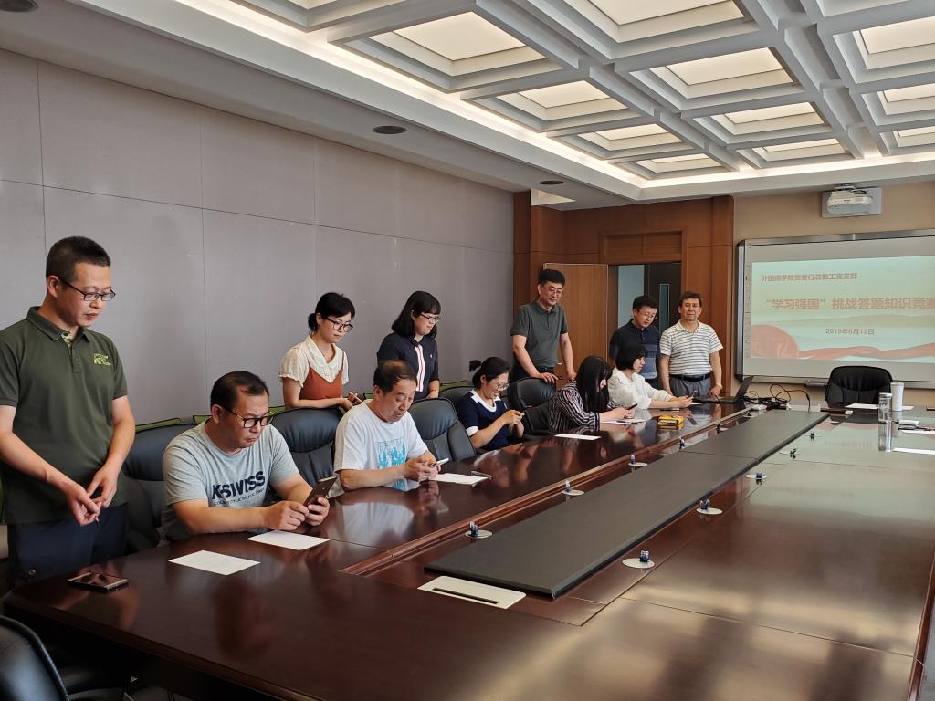 党委行政教工党支部于2019年6月12日举办了“学习强国”挑战答题知识竞赛。支部共10名党员参加了比赛,裁判由党委办公室主任刘多义同志担任。