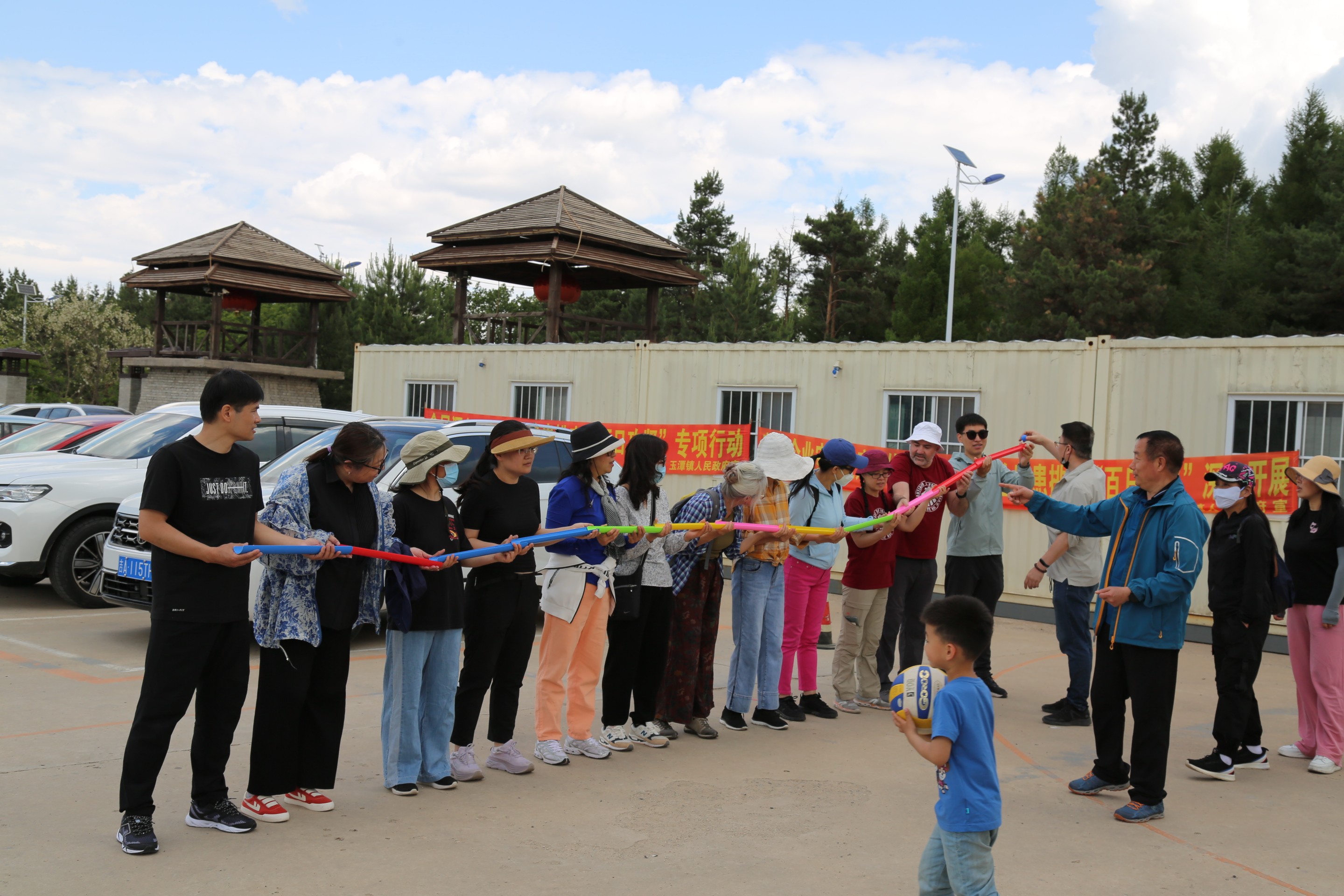 党委书记带领下,全体教职工分为两组,活动在两人三足的游戏中拉开序幕,随后珠行万里、棍夹球接力、拔河等游戏活动依次展开。从繁忙的教学科研工作中暂时抽身的教职工欢声笑语不断,每一位都沉浸在紧张又欢乐的比赛之中。团建活动结束后,教职工们在山中徒步,享受美景与花香,分享工作与家庭的趣事,自由而惬意。