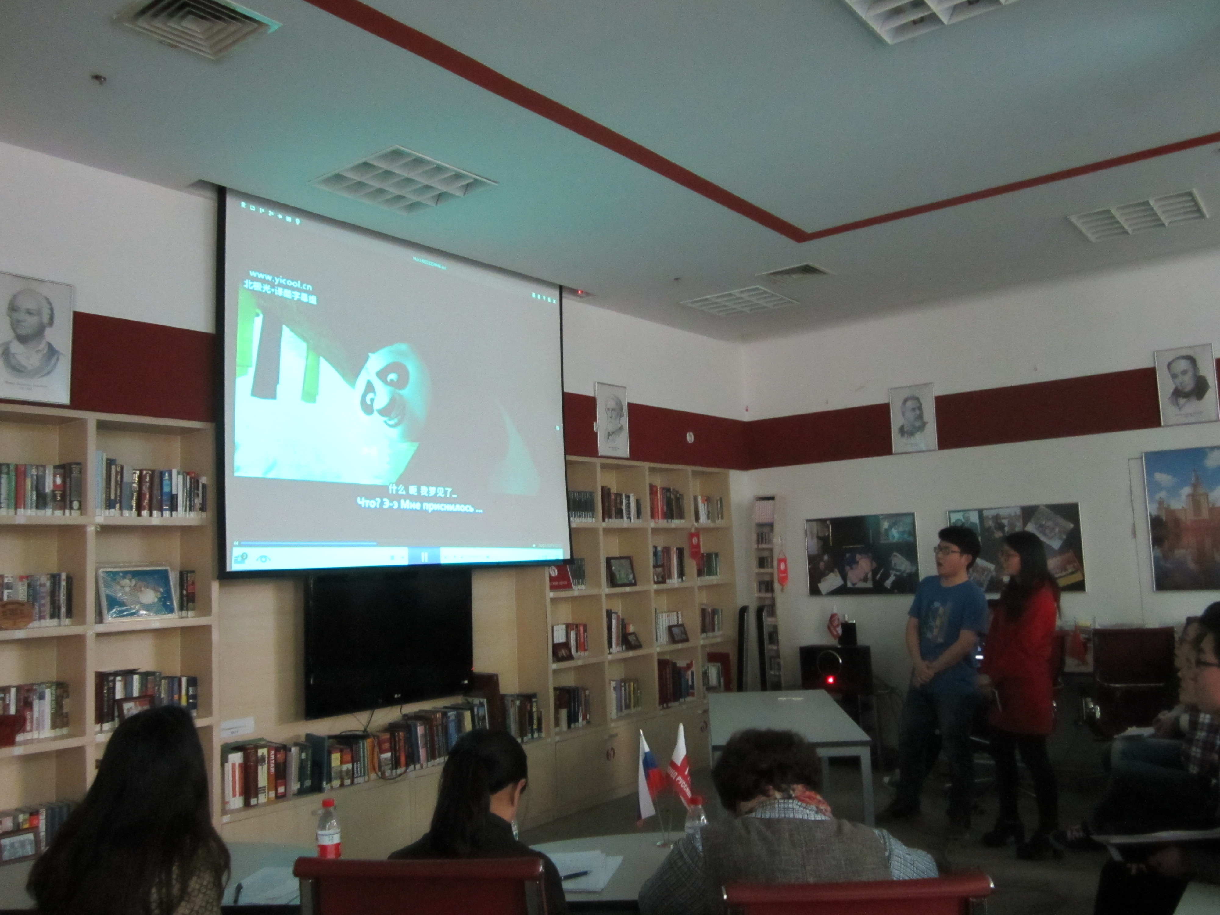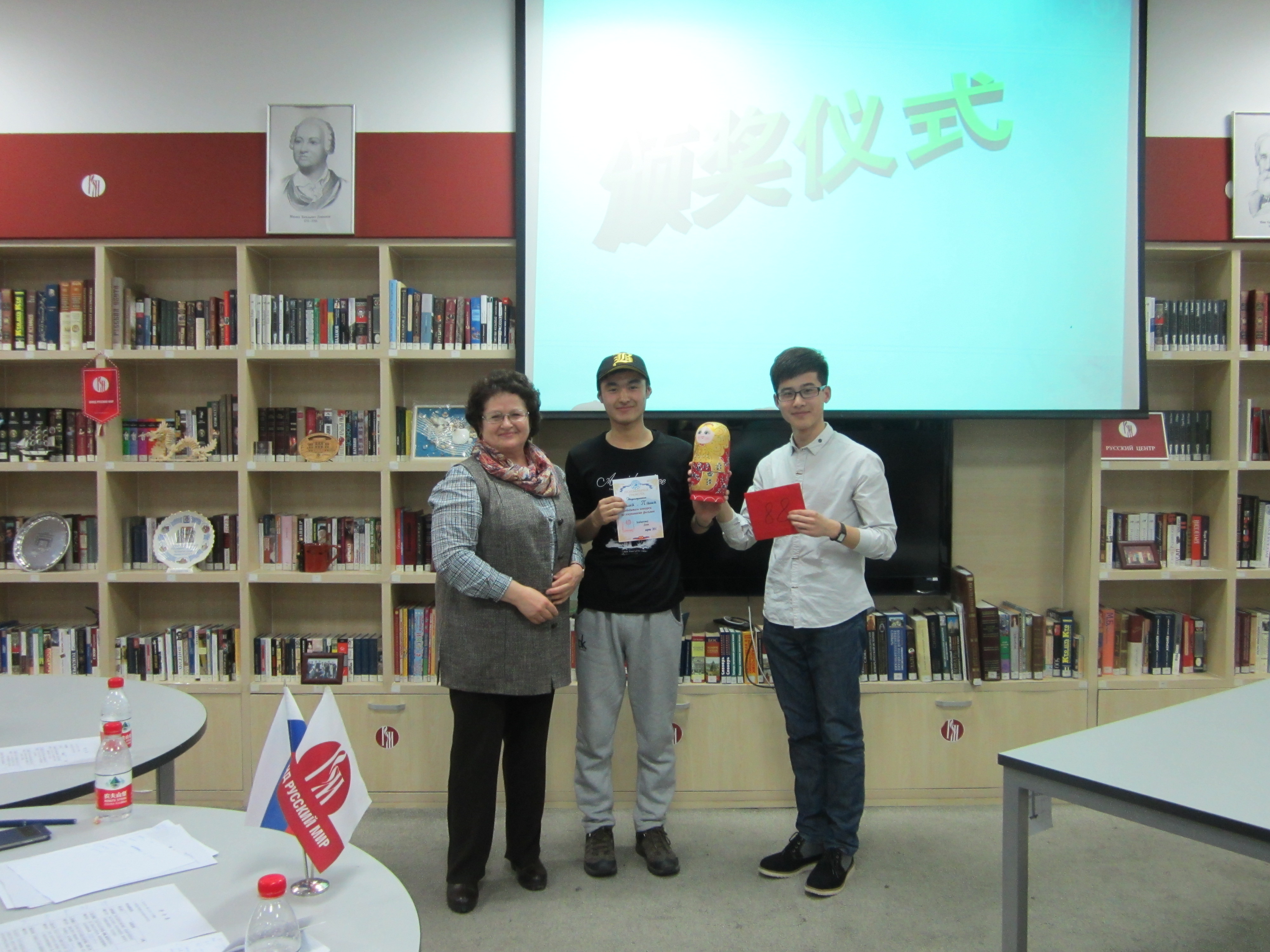 大赛现场的气氛极为热烈,每组参赛选手依次上台进行配音表演,现场选手风趣幽默的全俄语自我介绍,惟妙惟肖的配音模仿,赢得了现场观众和评委的一致赞叹和阵阵掌声。2013级俄语二班的温春光和邱兴楷同学,不仅模仿的声音与原声电影的语音语调相像,而且现场和影视资料中的人物一起做动作,逗得全场观众捧腹大笑。 活动的最后,主持人公布六组团体奖和三个获得“最佳配音人”称号同学的名单,并为获奖小组颁发了奖品。
