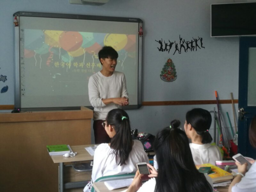 7月4号,朝鲜语系14级学生代表许峥、谢启博、王冀鲁与朝鲜语系15级全体同学在外语楼230教室进行了别开生面的韩国留学经验分享会。