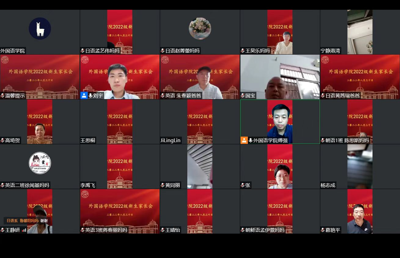 党委副书记、副院长傅强出席,家长会由2022级辅导员刘宇老师主持,200余名新生家长线上参加会议。