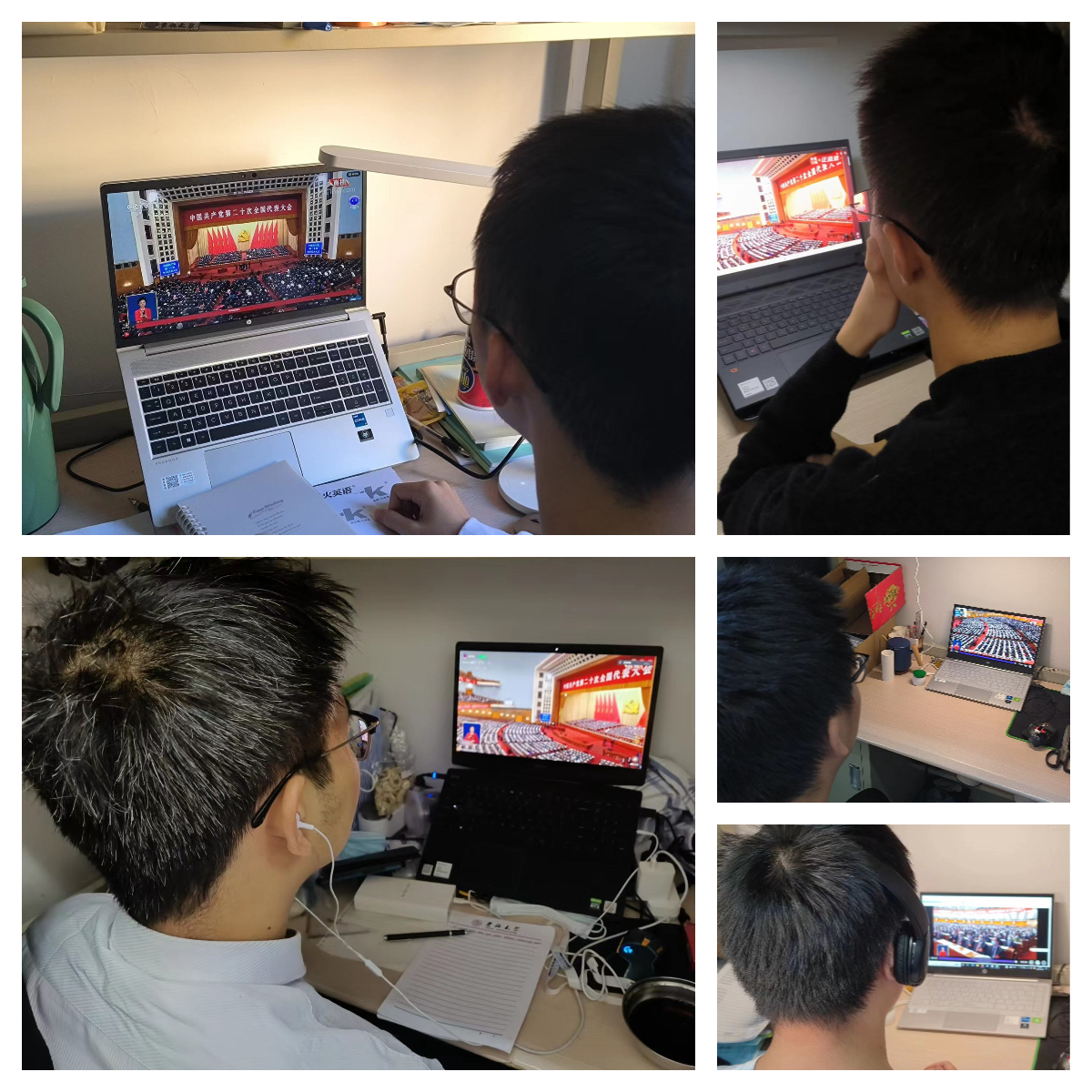 大会开始前,同学们在腾讯会议线上集合,学习探讨了二十大的重要意义,等待大会开始。上午10时整,党的二十大正式召开,习近平总书记代表第十九届中央委员会向大会作了题为《高举中国特色社会主义伟大旗帜,为全面建设社会主义现代化国家而团结奋斗》的报告。其间,同学们认真学习总书记讲话并做笔记,更深入的理解与认识中国过去五年的工作和新时代十年的伟大变革、更加明晰了自己作为新时代青年的责任与义务。会后,同学们受到党和国家数年如一日风雨无阻的奋斗激励,纷纷写下心得体会,表达了对党和国家的感恩和对更有高度、更有境界、更有品位人生的不懈追求。