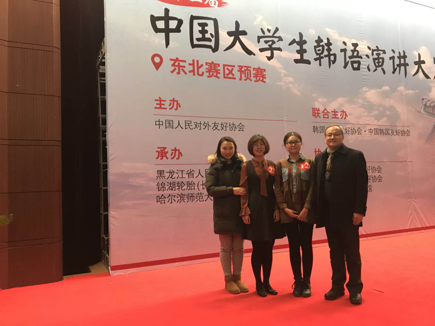 朝鲜语专业2014级本科生宋甘霖,张耀芳在金晶银老师的指导下参加本次大赛。经过激烈的比赛,宋甘霖夺得本次大赛的冠军,张耀芳获得大赛第三名。宋甘霖同学将代表东北赛区参加将于12月举行的全国总决赛。