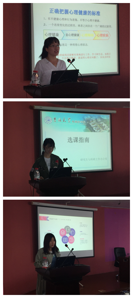 致词,表达了对2017级研究生新生的热烈欢迎,并从自身的专业素质、个人素质、人文素养、习惯培养等方面提出了对于新生的期许与要求。2017级新生代表孟天兰同学代表全体新生登台发言。她结合自己的支教经历倡议青年的社会担当,并表达了自身在研究生阶段的要求与憧憬。随后,党委书记刘昌松副教授向新生分享了自身的体会与经验,并对新生提出了 “勤于思考、勤于沟通、勤于实践、勤于律己”的 十六字箴言,劝勉新生珍惜时光、用心开拓。