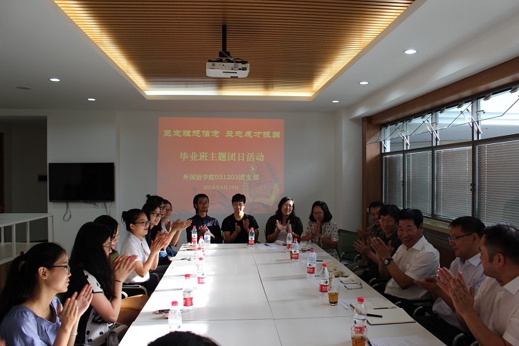 最后,冯正玉副书记发表讲话,他被同学们流露出的对母校、对老师、对同学的真挚情感所感动。他要求同学们将“忠诚”二字始终摆在未来成长、成才之路的第一位,将祖国对自己的培养铭记在心,做忠诚、正气且具有正能量的人;他鼓励外院学子们在外语方面做专家、做专门型人才;他希望同学们能够拥有广阔的胸怀和气度,懂得付出和奉献,成为对国家有重大贡献、对社会有良好反响、对母校有深厚感情的优秀校友。在全体师生热烈的掌声中,本次活动落下了帷幕。