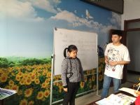 英语系李舜齐同学是本次课程的主讲人,其余志愿者作为辅助人员。课堂上,志愿者老师们采用图文结合、听录音等多种教学方式,为小朋友们进行了一场生动有趣的授课。各位志愿者老师与小朋友们积极互动,小朋友们也热情高涨。志愿者老师根据图画提出问题,小朋友们踊跃作答,在复习功课的同时学习新单词,温故而知新。老师还以图画作为奖励发放给小朋友,这更加激起了孩子们的积极性,整个课堂气氛十分活跃。授课结束后,小朋友们还意犹未尽,十分舍不得志愿者们,还拉着志愿者老师要签名。