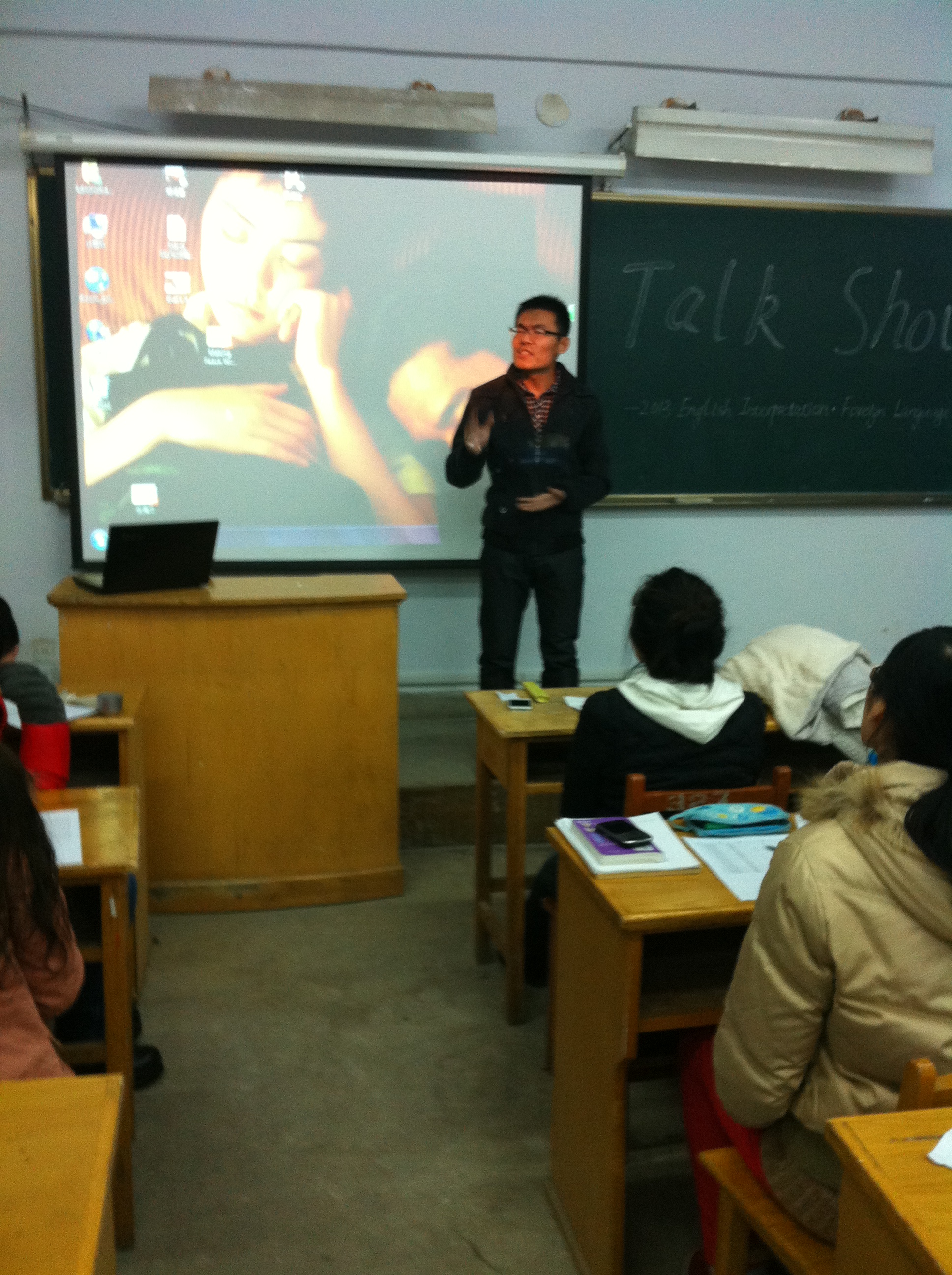 此次演讲比赛的主题为Talk Show,选手自由发挥,组织自己的演讲。一共分三个环节:第一个是演讲环节;第二个是计分环节,第三个是颁奖环节。口译班的全体同学既是选手,又是评委。比赛过程紧张又充满乐趣,同学们的演讲形式丰富多样,具有想象力和创造力。