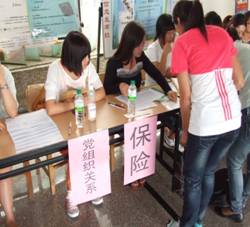 研究生党支部、团委及研究生会的学生干部组成,这支队伍在迎新的两天半时间里用最耐心的引导及最饱满的热情迎接每一位新同学。迎新工作分为以下几个步骤:回收录取通知书与合同、发放新生档案袋、收取发票、婚育情况统计、户口迁移办理、保险办理、党组织关系办理、划扣款协议以及一卡通的办理、贷款等各个事项。