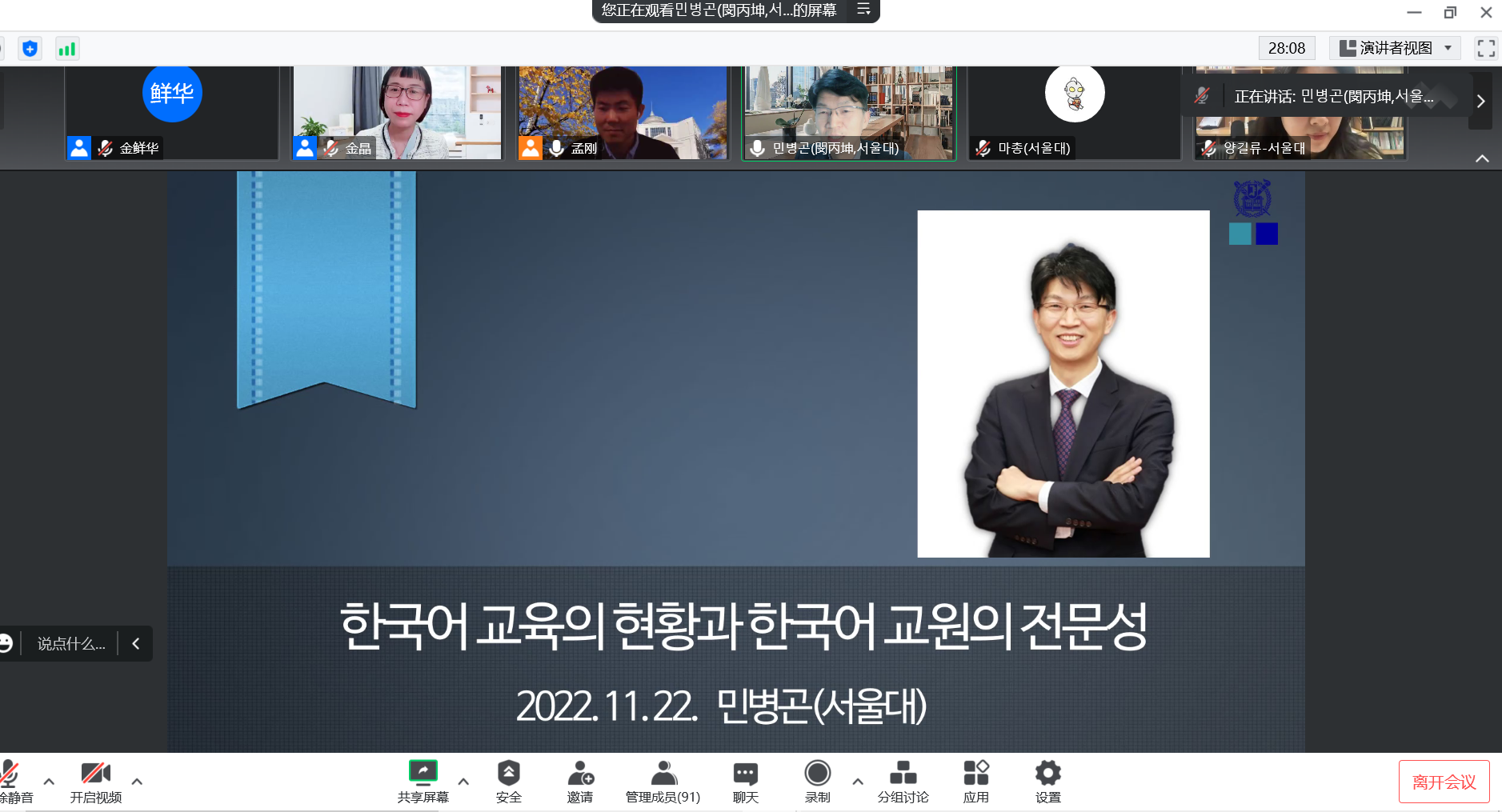 朝文系、韩国首尔大学及国内外其他院校师生参加了此次讲座,线上参会人数共计120多人。