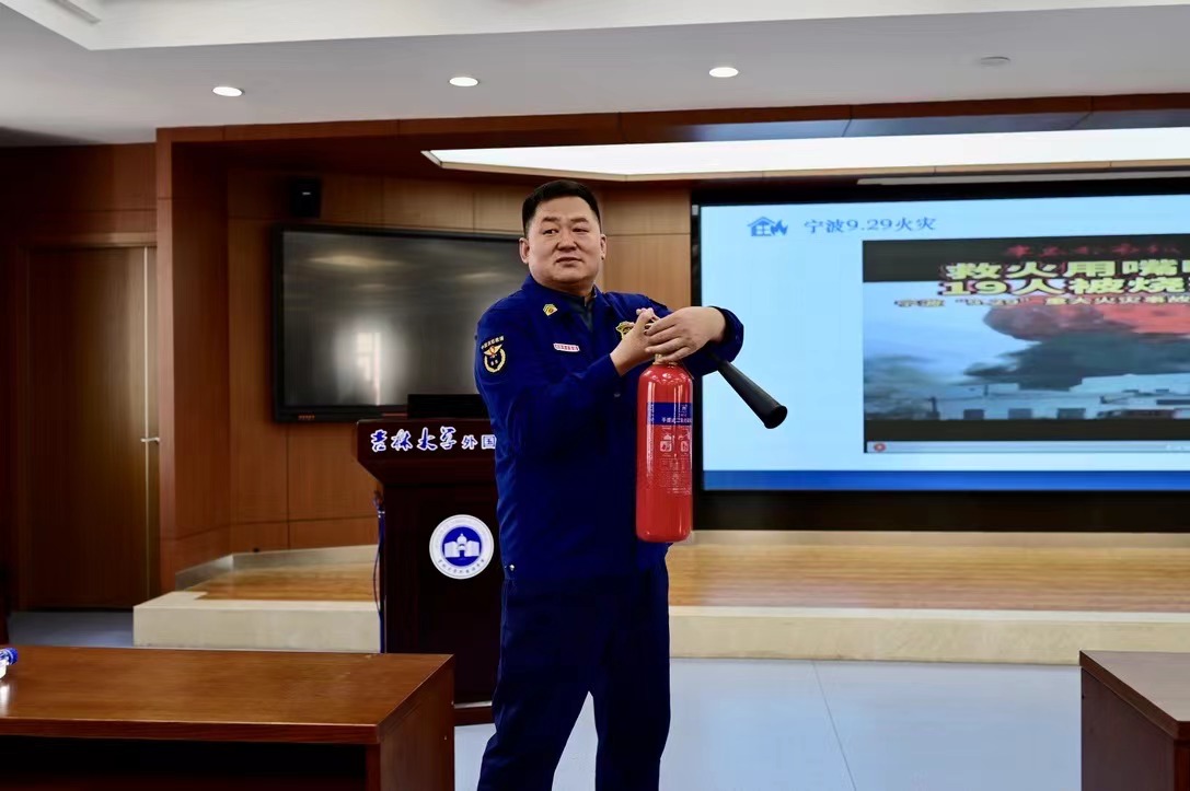 在外语楼500报告厅举办了消防安全知识讲座,并在讲座后于外语楼西门小广场进行了消防疏散灭火演练。本次讲座及演练由保卫处消防科副科长董立明主讲。