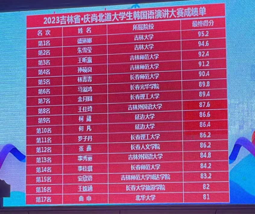 2023吉林省·庆尚北道大学生韩国语演讲大赛为热爱韩国语的在校大学生提供了互相交流学习及展示韩国语综合能力的平台。同时此次演讲大赛也是发现、培养、选拔韩国语专业人才,强化全省翻译队伍建设,服务中韩两国交往对人才日益增长的需求,加深吉林省与韩国庆尚北道两地人民之间互相了解与信任,推动两国友城间广泛开展务实交流合作的重要平台。