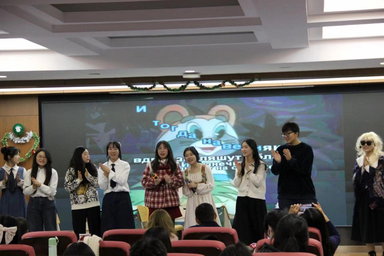 在2024年新年来临之际,迎为接新年,同时展示俄语专业学生的语言和表演能力,增强学生对俄罗斯文化的兴趣,了解俄语专业的魅力,俄文系师生于2023年12月23日晚在外语楼500报告厅举办了俄语新年晚会。本次晚会由俄语专业学生孙畅言、王烁天、陈小煜、李俊彤主持,极速赛车 老师李丽、王晓阳、陈昊、孙欣、外教Татьяна Плохова Михайловна等人出席,还有来自考古极速赛车 、数学极速赛车 等非俄语专业学生同学参加。