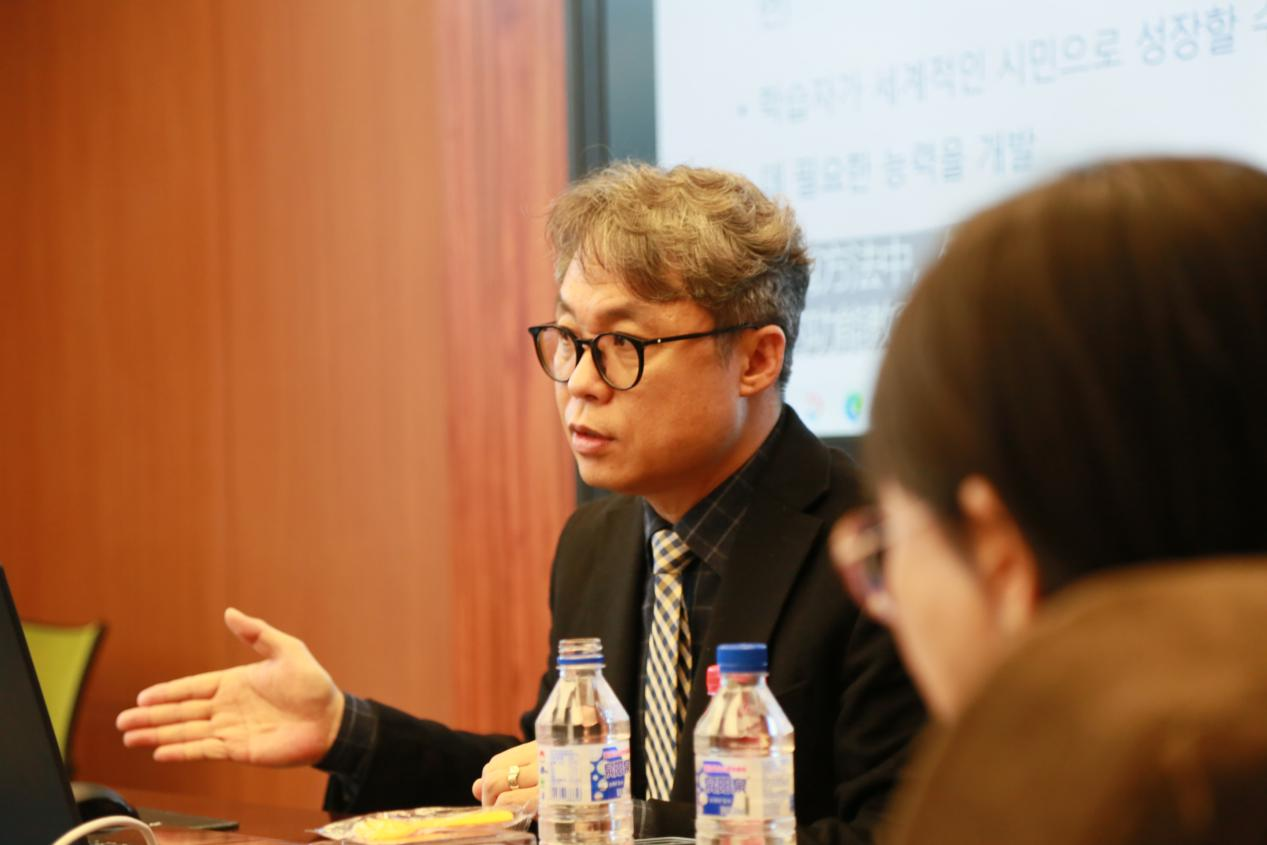 双方围绕MTI人才培养和“韩国语翻译的新视野——技术与人类的协调发展”开展了深入交流。金晶副院长向林亨栽教授介绍了朝文系的历史沿革、师资情况和MTI培养的方案、主要特征、以及成效和面临的问题。林亨栽教授充分肯定了朝文系MTI培养的成就,并就目前MTI培养面临的问题提供了自己的意见。