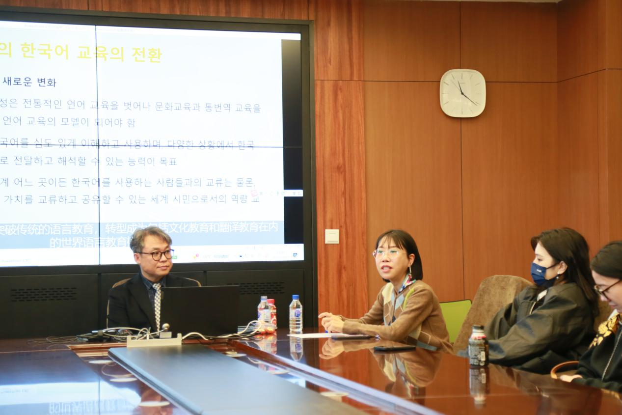 开展学术交流活动,金晶副院长、朝文系教师及朝鲜语口译专业研究生和高年级本科生共同出席交流活动。