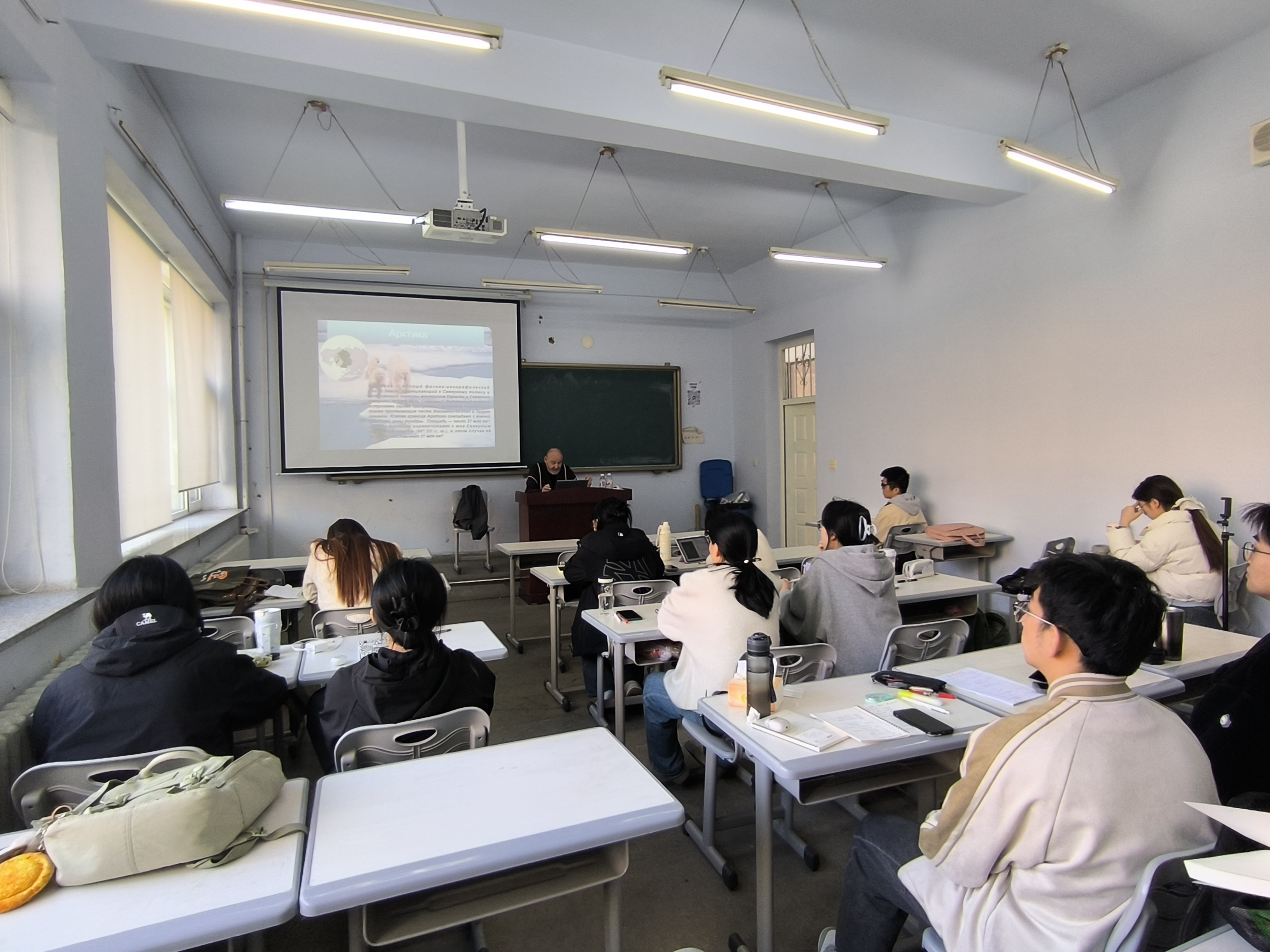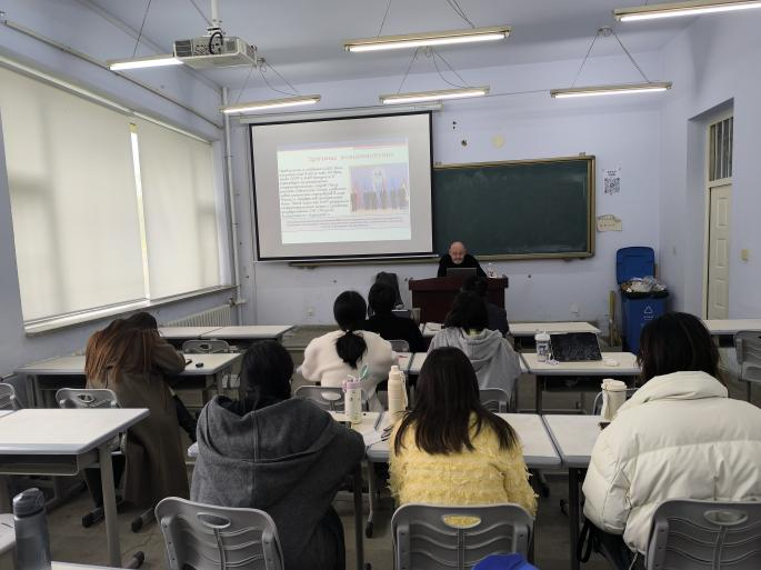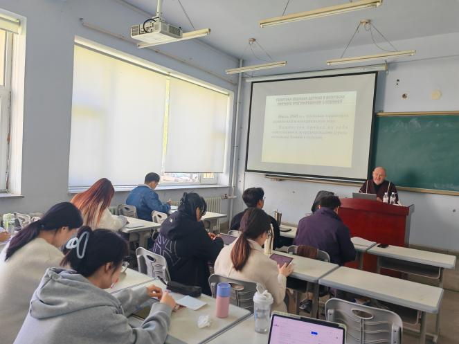 俄文系研究生做了为期10天的短期课程。在全球化的背景下,安全与发展问题日益成为国际社会关注的焦点,彼得洛夫斯基教授的系列讲座主要围绕东北亚地区安全与合作、北极地区中俄合作、新时代中俄战略合作伙伴关系的内涵、新时代“一带一路”倡议的深刻含义以及俄乌冲突的原因与前景等问题展开。彼得洛夫斯基教授指出在全球安全与发展面临严峻挑战的形式下,中国式民主的理念对全世界国家都具有积极的借鉴意义。