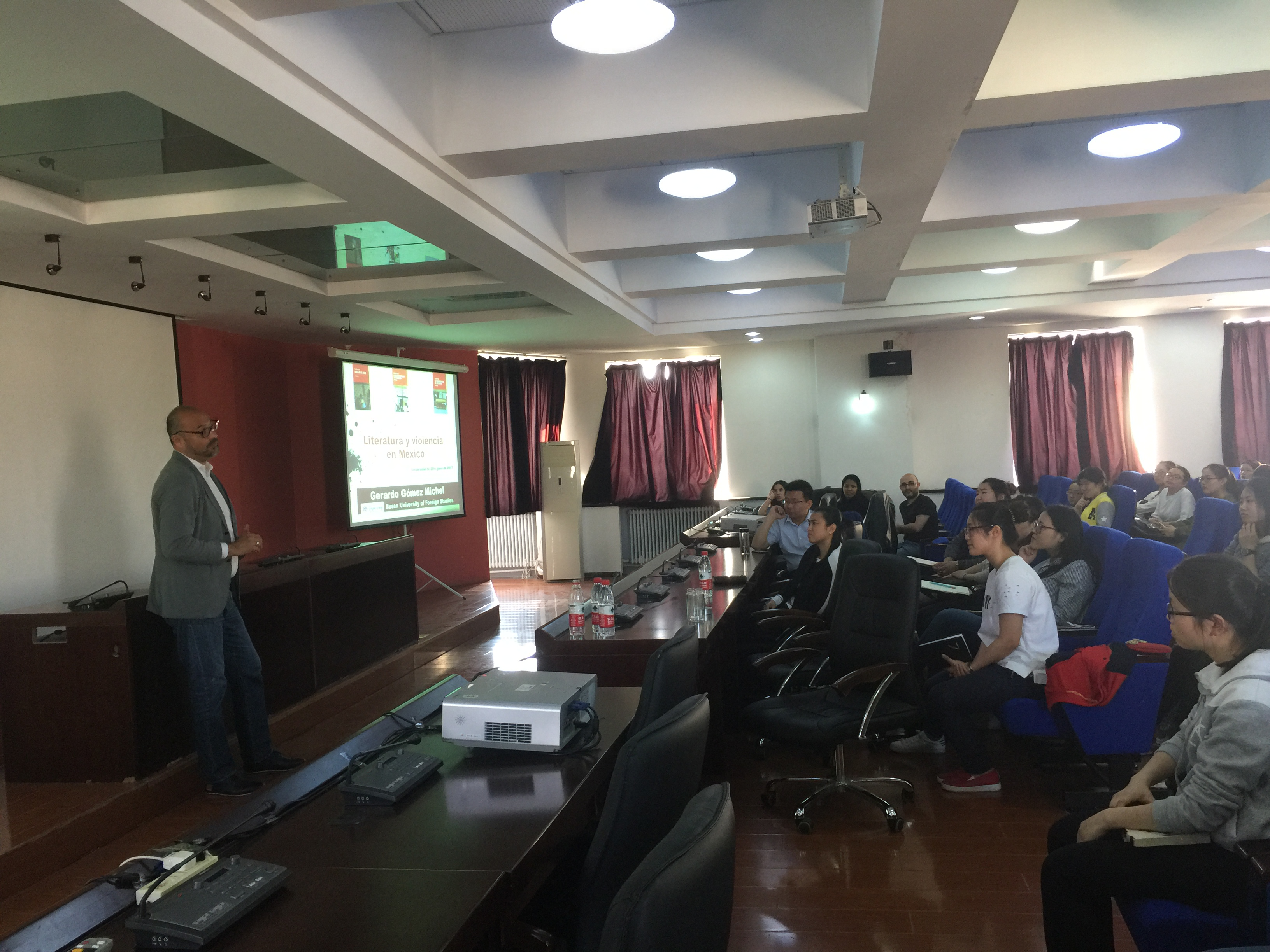 During the lecture, Dr. Gerardo Gómez began with the social violence, a serious problem in modern Mexico. Combining the Mexican history with literature, he also sorted out and analyzed the causes of social violence occurring in Mexico now. In the meantime, Professor Gerardo Gómez recommended to the students many of the great literary works, which revealed the social reality of Mexico. The students, hearing the lecture, reflected that they had benefited a lot from it. This lecture broadened greatly the range and depth of students` knowledge and way of thinking and also enabled the faculty and the other audience to understand Mexico in a more real and comprehensive way.