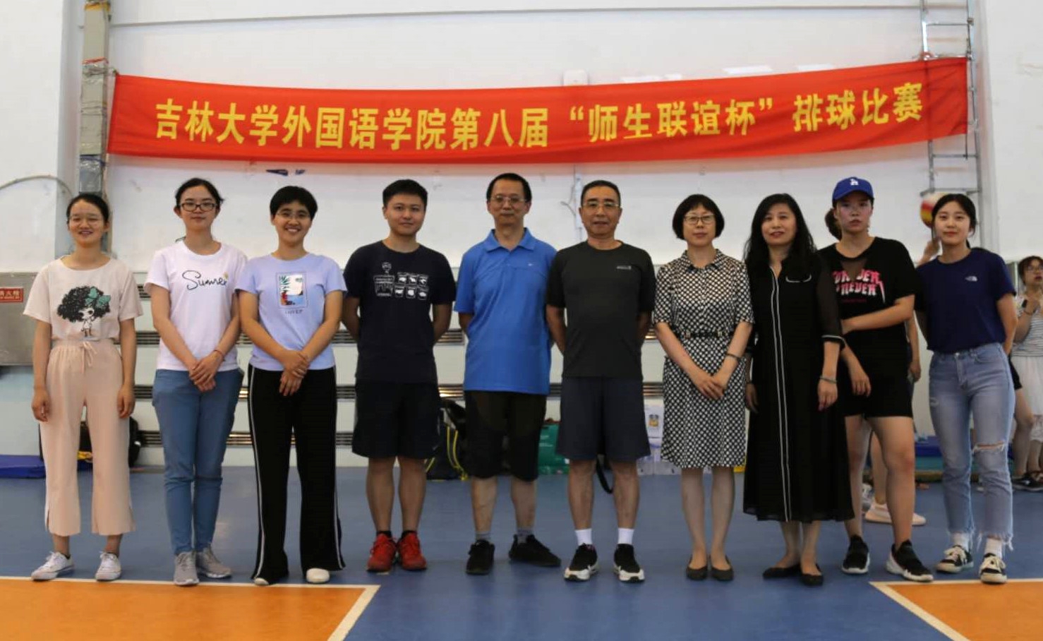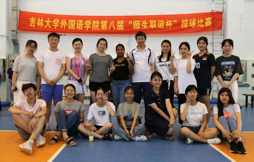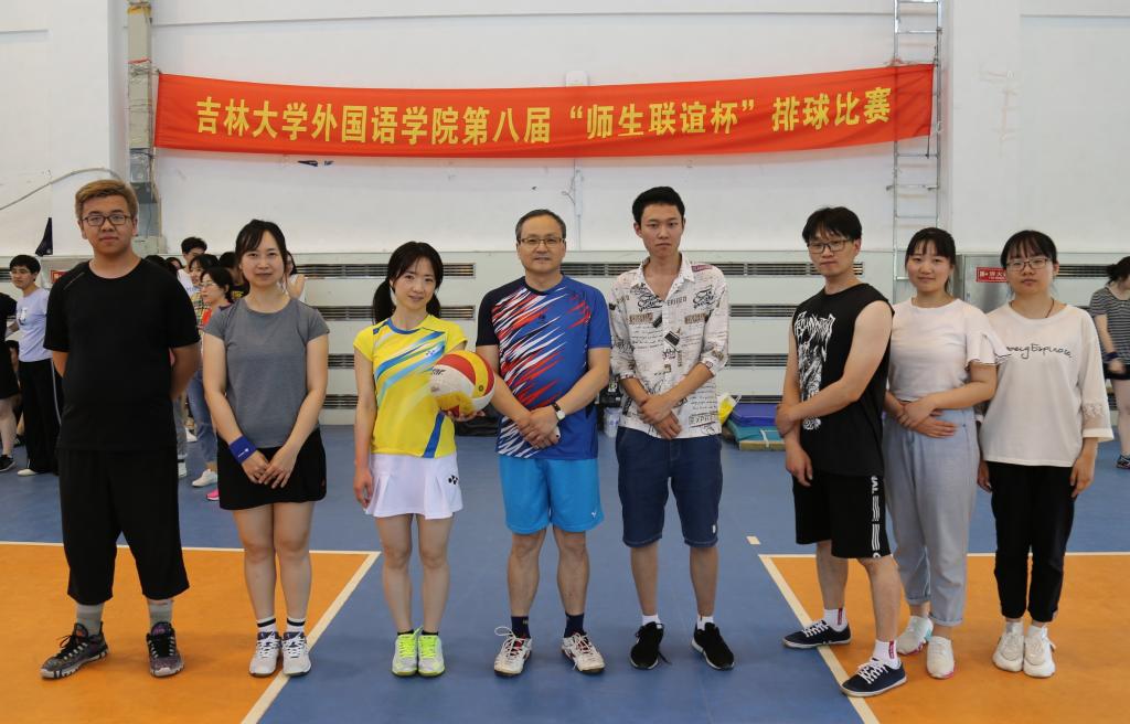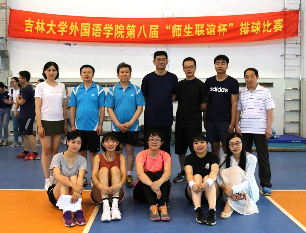 The eighth "Teacher-Student Friendship Cup" of volleyball was held in the central campus gymnasium on the afternoon of June 26th. This match is designed to send off the graduates of 2019 and strengthen their emotions with the College. It also enriches the spare time of teachers and students and improves their physical fitness. With nearly 60 participants, the match included five teacher-student teams, respectively from the Japanese department, the Russian department, the Korean department, the Spanish department, and the College of Administration. The round-robin system of the best in three games was adopted in the competition (25 point system, 15 points in the final). After fierce competition, the Spanish department team won the championship, the Korean department team won second place, and the Japanese department team won third place.