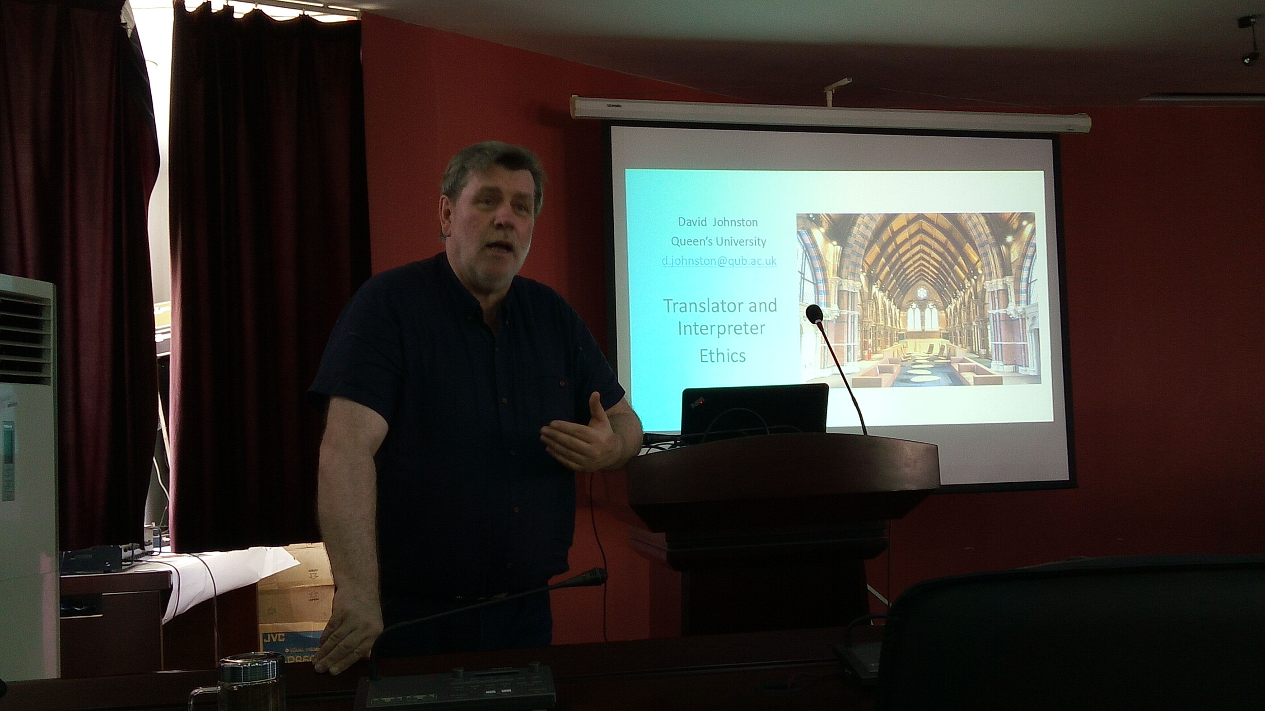 On May 11st, Series Lectures on Translation Theory and Practice were given in the conference room 500 of the Foreign Language Building. Based on the topics of “Translation from the Perspective of Belfast” and “Professional Quality of Translators and Interpreters”, Professor Johnston shared his teaching and research experiences in the field of translation with graduate students of our college.